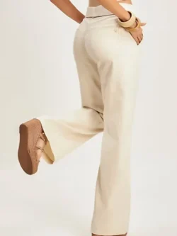 Calça wide leg linho possui cintura alta e uma forma de perna larga, trazendo mais conforto para calça. É uma peça elegante para ocasiões mais sofisticadas ,possui um cinto em cordão para da charme a peça. Além de visual elegante ela oferece também um incrível conforto durante o uso. Contém detalhes no cós com dobra.
